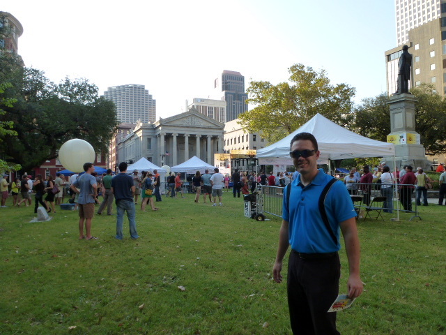 Fundraising event in Lafayette Park located next to the Blake Hotel. Our hotel room window is to the left of the statue. Federal Reserve building in background.