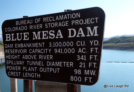 The Blue Mesa Ranch RV Park sits across the road from Colorado’s largest body of water. At an altitude of 7519, the Blue Mesa Reservoir is 20 miles long (32 km) and offers 96 miles of shoreline (154 km). It was created in 1965 when the Blue Mesa Dam was built along the Gunnison River.