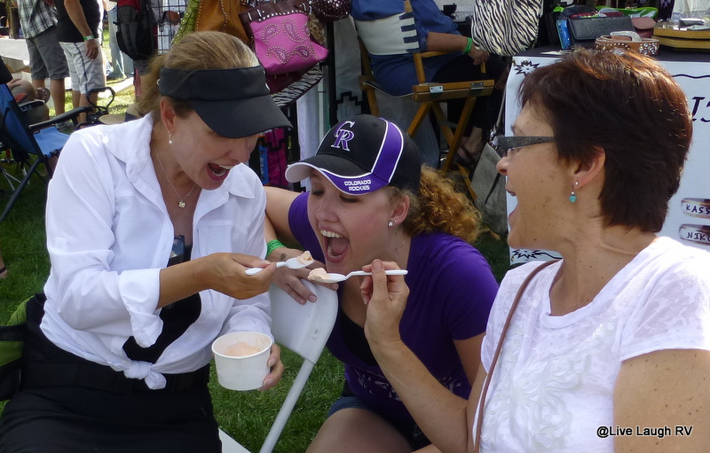 The festival is held in a beautiful park setting with mature trees, offering shade beneath a gorgeous Colorado blue sky.  Guests are encouraged to bring chairs, blankets, small coolers, and a corkscrew for some mid-day picnic relaxation.  There are numerous food vendors which we counted on for sustenance.  Big mistake, as lines were extremely long.  In retrospect, I wish we had packed a picnic lunch.  Note for next year!