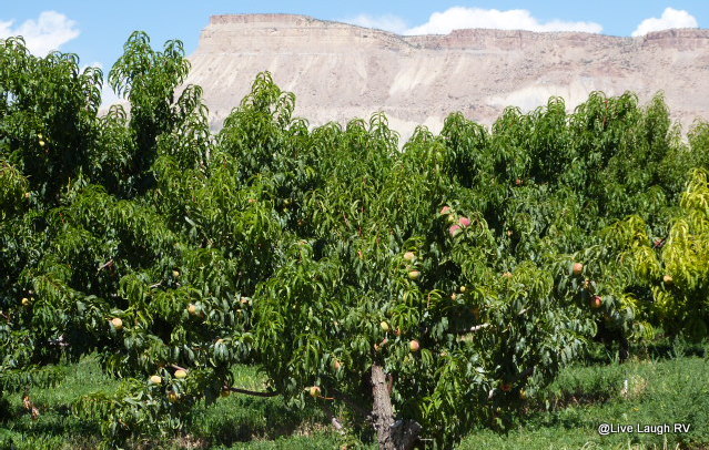We do a quick drive through downtown Palisade and then proceed in the direction of the East Orchard Mesa Loop. This scenic loop takes us past orchards, vineyards, and quaint produce stands. It’s September 21st and the trees no longer bear the sweet, delicious peaches that were abundant in August, instead we find apples not quite ripe for the picking.