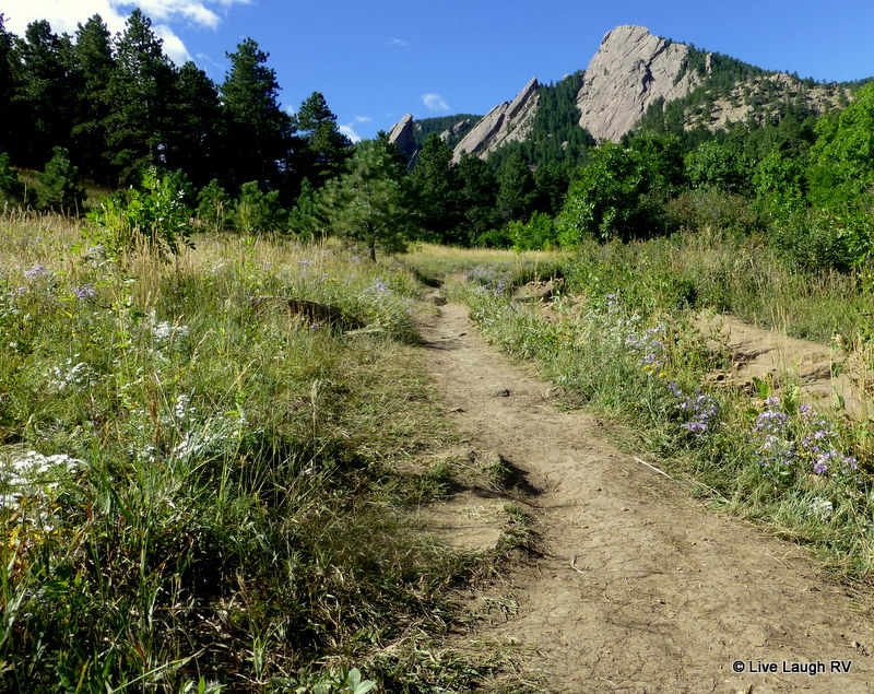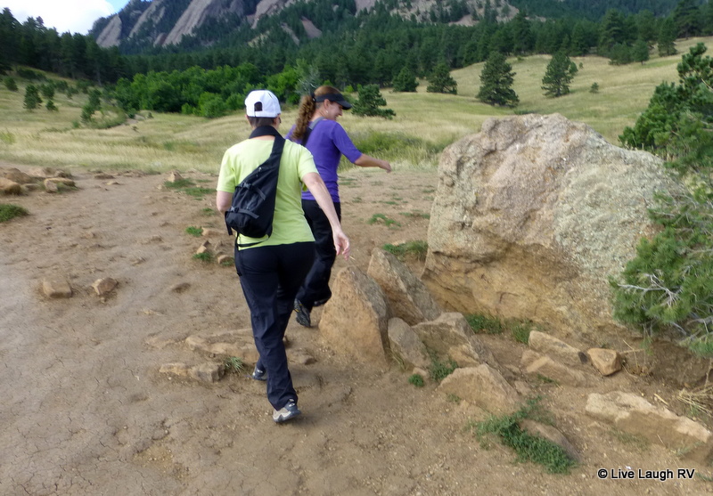 Since we weren’t sure what the weather was going to do, we opted for a short stroll that day instead of a serious hike and of course, these two shutter bugs had to stop for plenty of photo ops. Those are the Flatirons in the distance.
