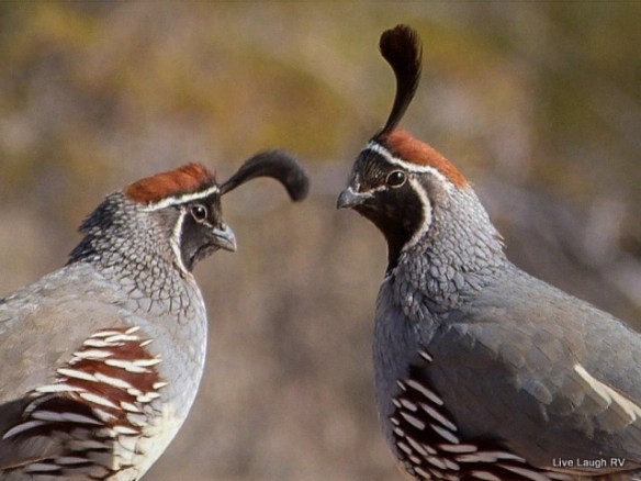 I love watching those quails with the little feather on top of their head. Hope I get to see some of the baby quails before I have to leave Arizona!