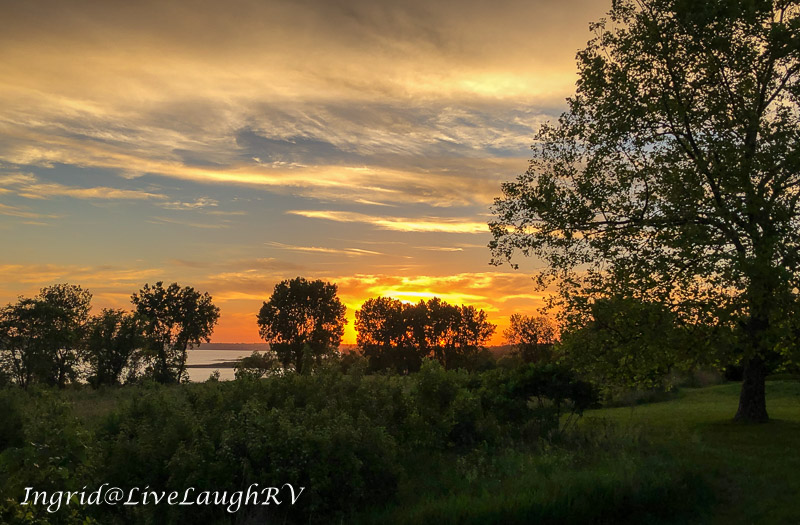 Even though those four days weren’t consecutive, they were still exhausting. At the end of day three, we arrived at a beautiful CORP of Engineers campground just north of Des Moines, Iowa, and ended up sitting for two days waiting out some very nasty weather. I still don’t know how we managed to get so lucky snagging such an amazing campsite without a reservation. All I can say is the travel Gods smiled upon us and this turned out to be the perfect place to rest and wait out the weather.
