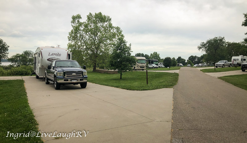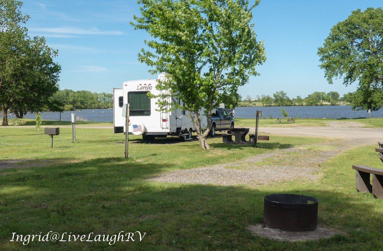 This was a great little find. It’s about 7 miles east of Interstate 135 and north of Wichita, Kansas. Harvey County East Park appears to be an extremely popular place on weekends with anglers and boaters. We arrived around 4:00 in the afternoon on a Sunday as campers were clearing out. Check out time was 3:00, but folks didn’t appear to be in any hurry to leave. We snagged a nice long site so we wouldn’t have to disconnect, but the majority of sites appeared to be geared toward smaller RVs.