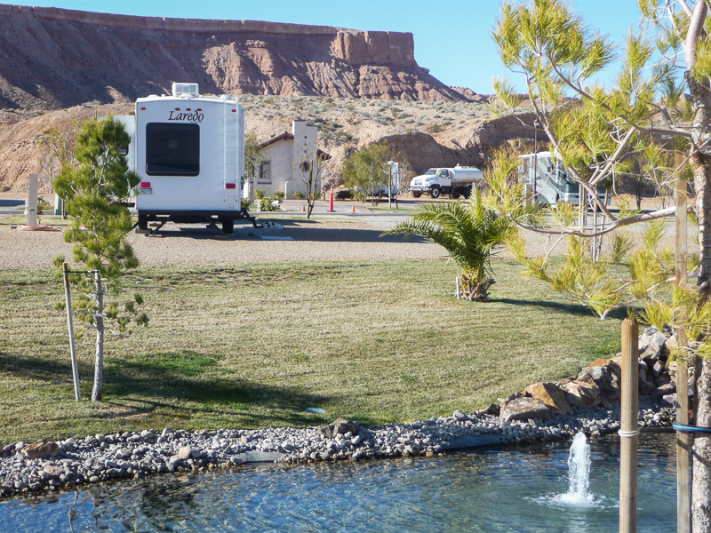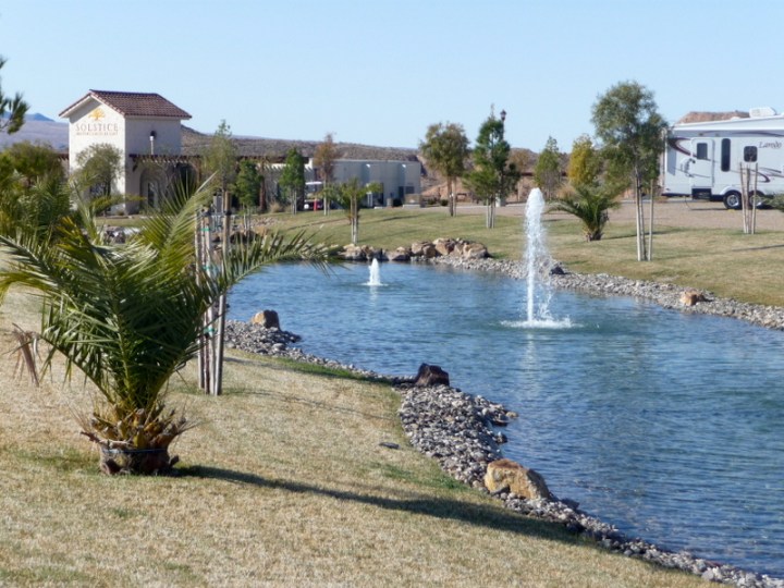 With only two exits off of Interstate 15, we chose to exit at the first one and stop at Walmart to stock up on supplies. Before turning into the Walmart parking lot, we notice a banner hanging on some fencing – RV Resort with an arrow. Once our Walmart shopping trip was complete, we decide to check out that RV Resort on the banner. The Solstice Motorcoach Resort had only been open less than a year and was an absolutely beautiful facility. Considering it was so new, there were plenty of empty sites. We decide to spend a week and focus on ridding ourselves, the dog, and the RV of dirt and sand. I’m sure we were carrying a few extra pounds of weight in sand alone from our stay in Death Valley.
