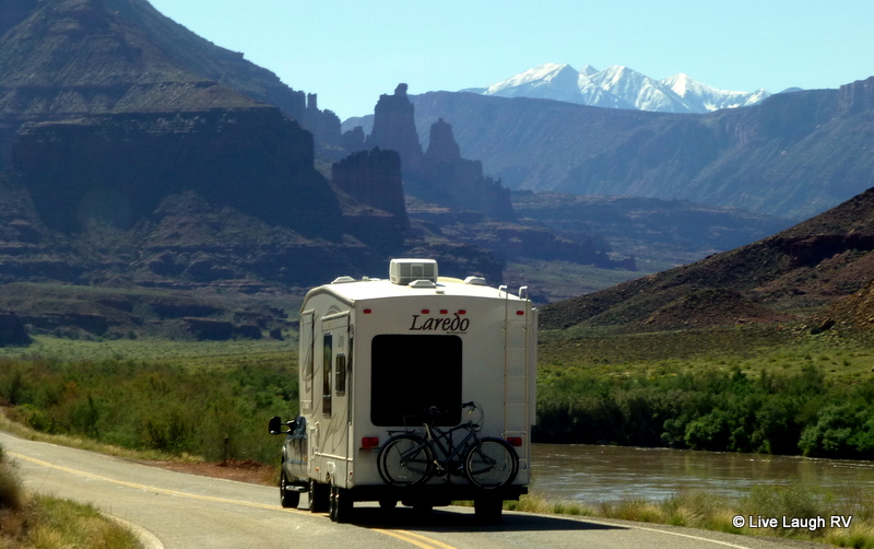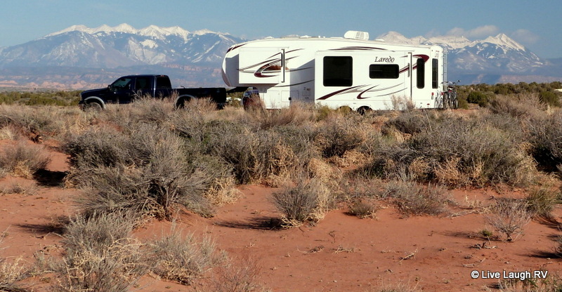 Alas, not wanting to dip into savings or go into debt for an RV, we traded in all the toys for a new 2011 Keystone Laredo 266RL 5th wheel. At a modest 31 feet long, we knew she could squeeze into a lot of National Parks, National Forests, and State Parks. For us, it’s all about location and views. And let’s face it….. size does matter!